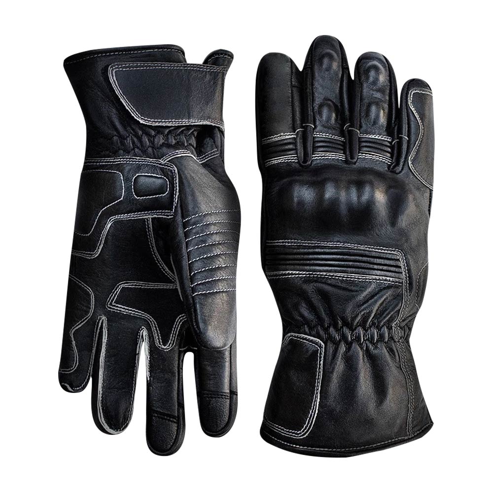These gloves stop water from getting in. You stay dry even in heavy rain. They have warm inside material for cold weather. The palm uses leather for strong grip on wet handles. You hold the bike better. Fingers bend easily so you use brakes and clutch well. Hard protectors on knuckles keep hands safe in a crash. Long cuff covers your wrist fully. Good for riding all year. Easy to wear and clean.