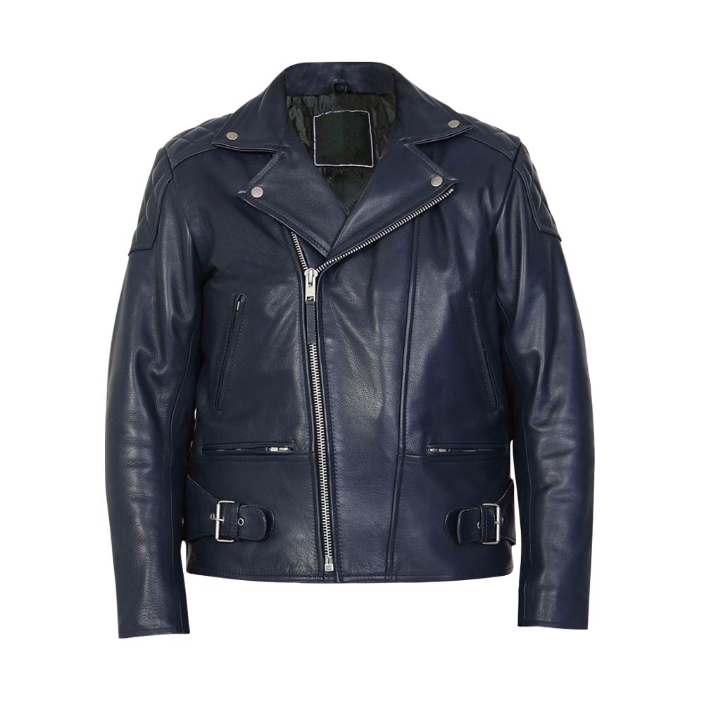Men’s leather biker jacket for tough rides. Reinforced shoulders and elbows keep you protected.