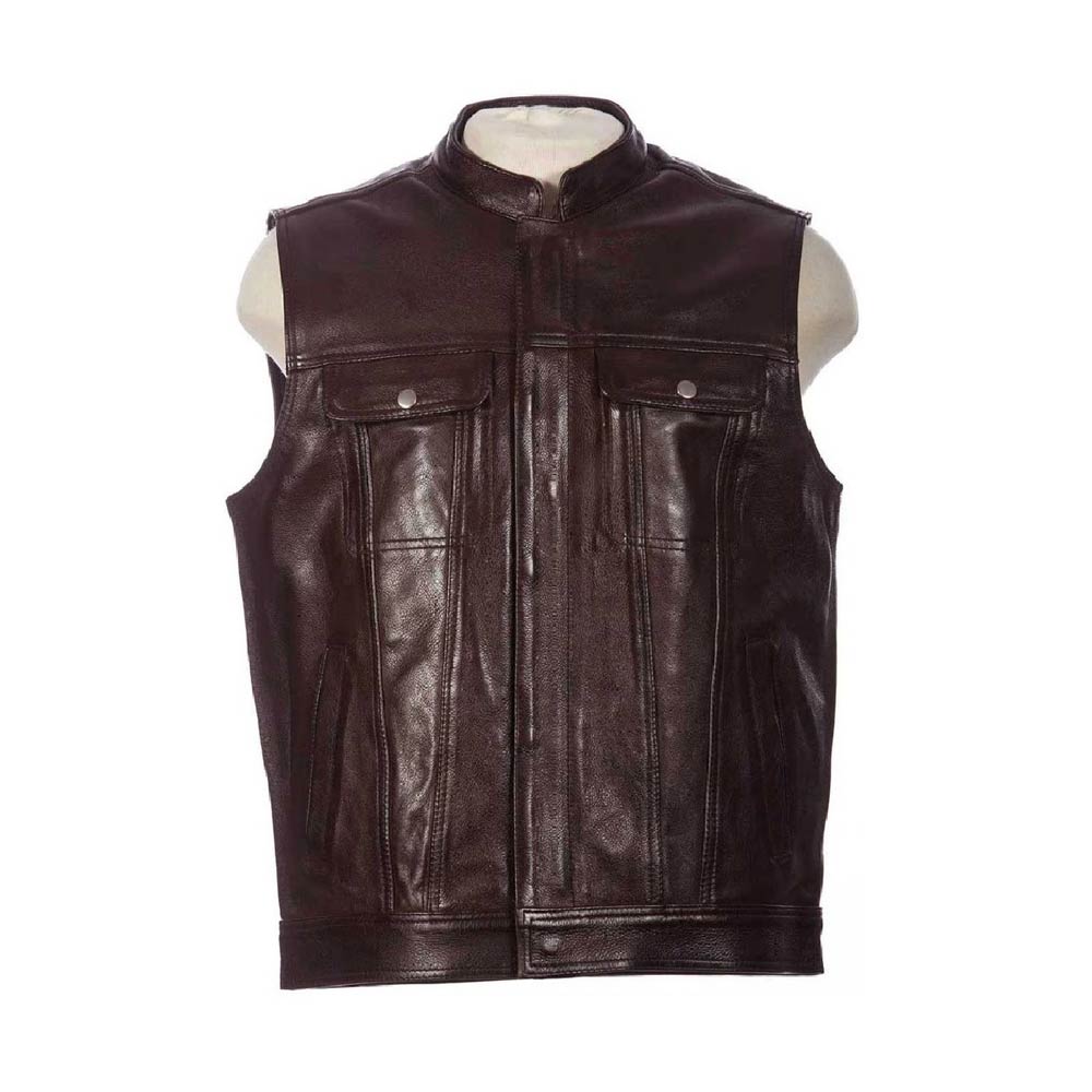 This vest uses thick genuine leather. It stops scrapes and lasts long. The leather feels better after some wear. Side laces let you adjust the fit tight or loose. Easy to put on and take off. Pockets inside and outside hold small things. Good for keys or phone. Great for warm days or layering in cold. Looks tough over any shirt.